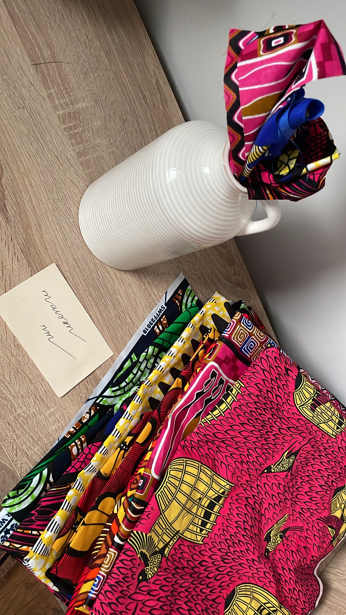 Au cœur de nos créations, le Wax raconte une histoire à travers ses motifs et ses couleurs, chacun porteur de sens et de symbolique. Depuis toujours, ce tissu m’attire de part ses caractéristiques et l’histoire qu’il transmet. La wax a su trouver une place particulière dans ma vie et continue d’inspirer chacune de mes créations.